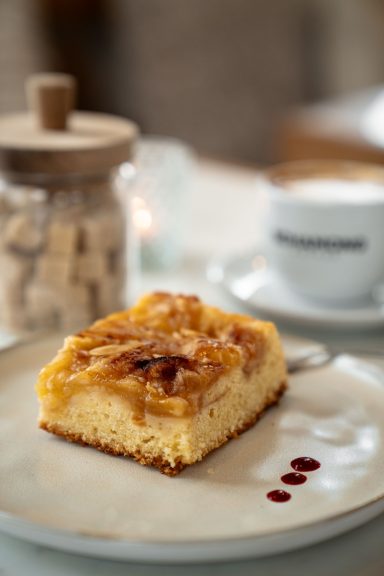 Zwischendurch darfst Du dich auf frisch gemahlenen Kaffee aus unserer Barista-Maschine freuen und auf frischen, handgemachten Kuchen.